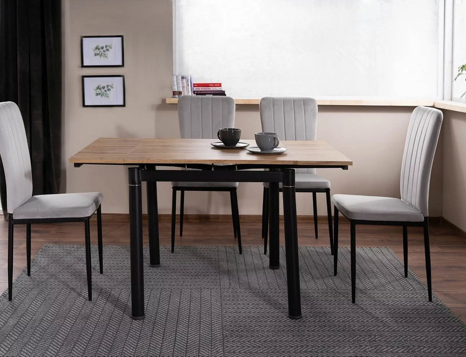 Moderný, čistý jedálenský stôl s nadčasovým dizajnom - pre domáce jedálne a kuchyne, kde je dôležitá praktickosť a stabilita.