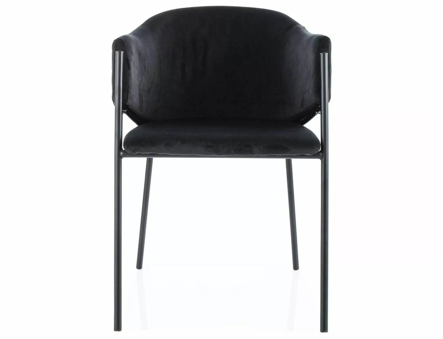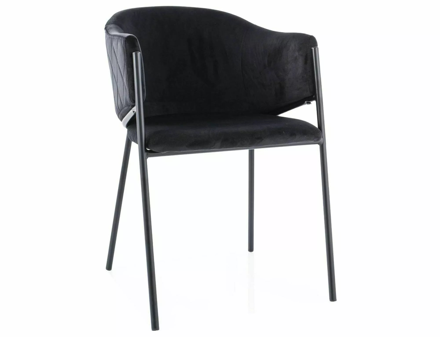 Kompaktná, univerzálna jedálenská stolička s pohodlným zamatovým (Bluvel) čalúnením, ľahko čistiteľným a odolným kovovým rámom.