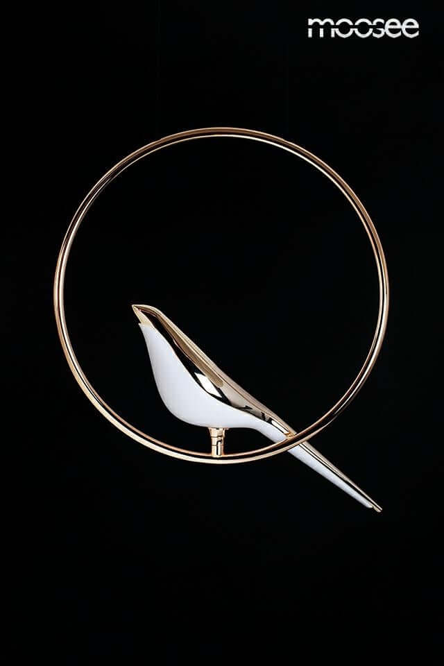Závesná lampa s vtákom v zlatej farbe